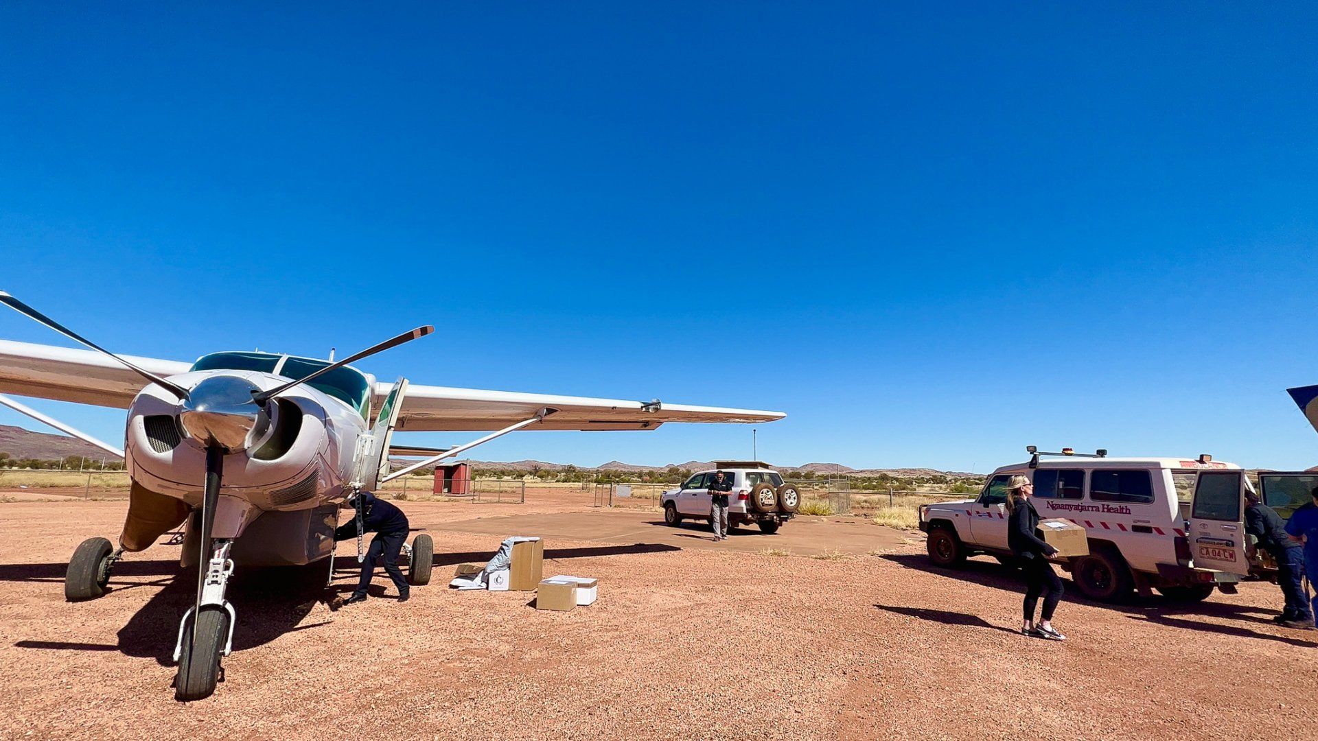 Photos: The staff from Ngaanyatjarra Health were on hand to meet the aircraft to pick up these special supplies.
